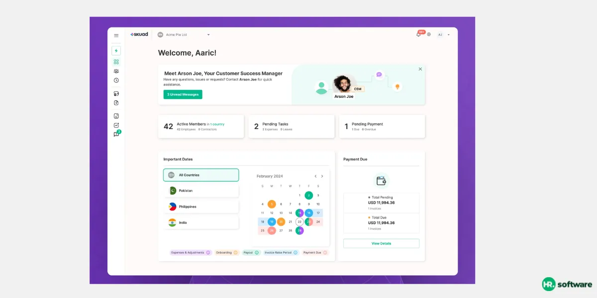 Skuad is a fast-growing EOR platform focused on helping startups and SMEs hire talent across emerging markets, especially in Asia, Africa, and the Middle East. With EOR coverage in over 160 countries, it provides localized contracts, compliance, and payroll with a special focus on underrepresented hiring regions. Skuad simplifies remote hiring for founders and HR teams through a clean, developer-friendly interface and flexible engagement models. It’s especially suited for companies that want to tap into global talent hubs beyond North America and Europe.