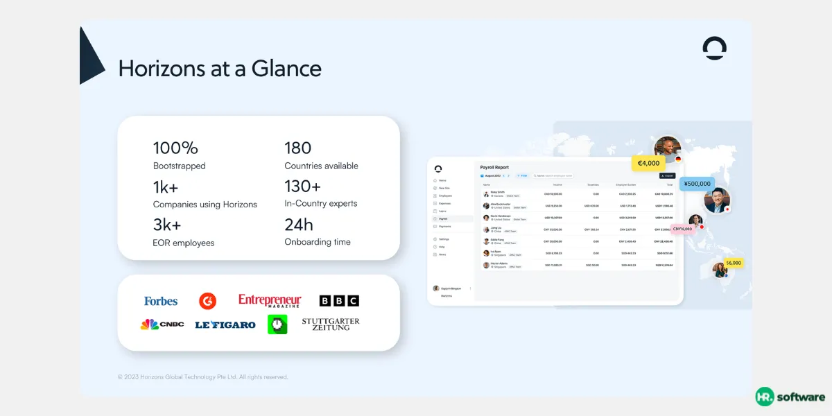 Horizons EOR specializes in personalized, bilingual support and tailored hiring plans across Europe, Asia, and LATAM. It’s a great option for businesses needing hands-on legal guidance in multilingual or highly regulated markets like Japan, China, Germany, or France.