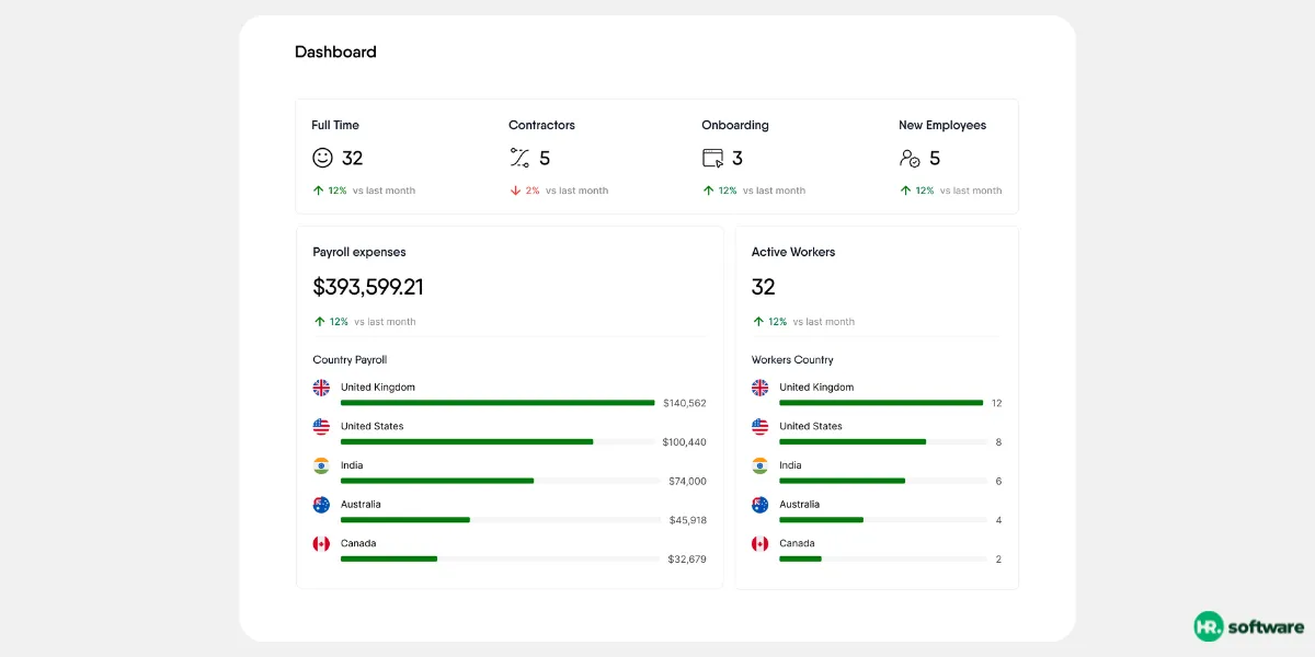 Its tech-driven platform also supports payroll automation, localized contracts, and tax filings, making it ideal for fast-growing teams hiring across multiple regions.